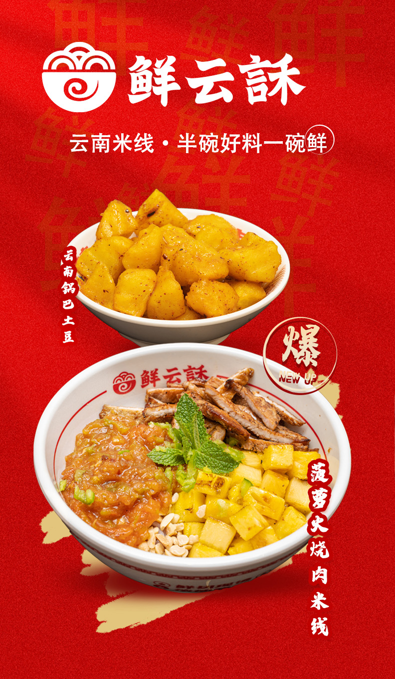 鲜云訸米线---新鲜是不变的追求,在快节奏的都市生活中寻找一份极具性价比又新鲜食材的小吃快餐成为了许多人的日常需求。鲜云訸米线应运而生,主打市井风的环境及新鲜的食材。精选牛上脑,肉质鲜嫩多汁;特制肉酱,融合多种香料,香味无穷;搭配Q弹爽滑的米线,每一口都是对味蕾的极致诱惑。当下餐饮市场应轻投资重运营,鲜云訸打破传统品牌合作模式,减少建店成本,重视线上营销,帮助合作商从成本控制、推广宣传等方面提供实打实的帮助,做一个良心品牌。